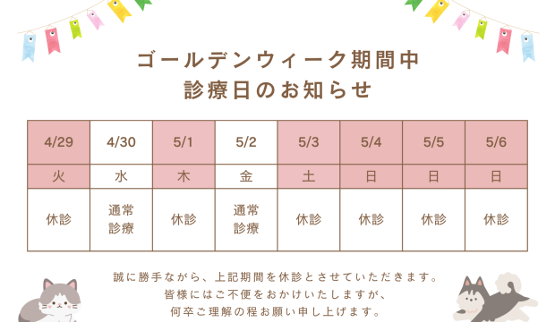 ※木曜、日曜午後、祝日は休診です ※日曜は13:00まで